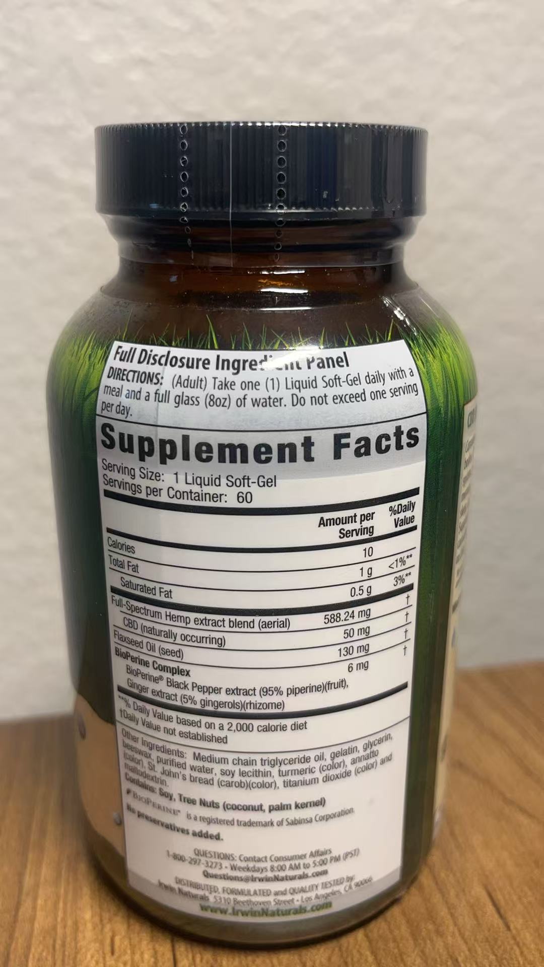 Irwin Naturals CBD 50mg - 60 Liquid Soft-Gels 天然止痛CBD胶囊