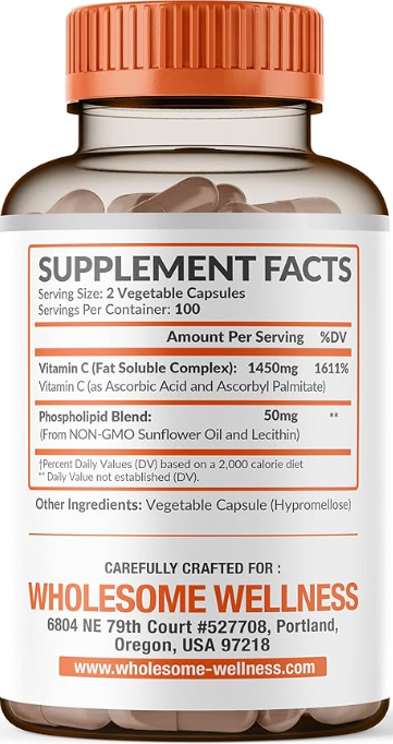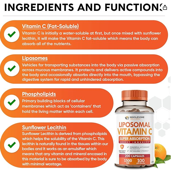 Wholesome Liposomal Vitamin C-1500mg 200 Caps 脂质体维生素C 1500毫克 200粒