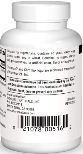Source Naturals Ultra Chromium Picolinate 500 mcg 120 tbs 吡啶甲酸铬 500mcg 120粒
