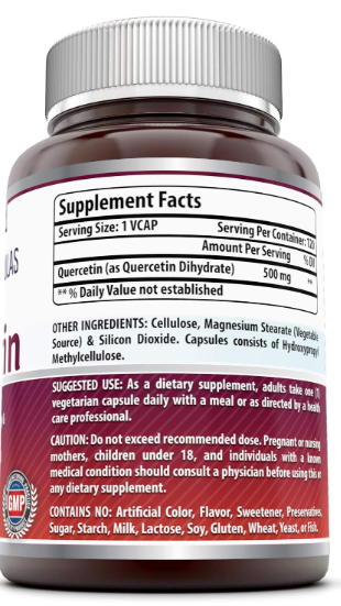 Amazing Formulas Quercetin 500mg, 槲皮素 500mg, 120粒