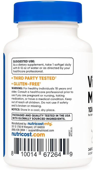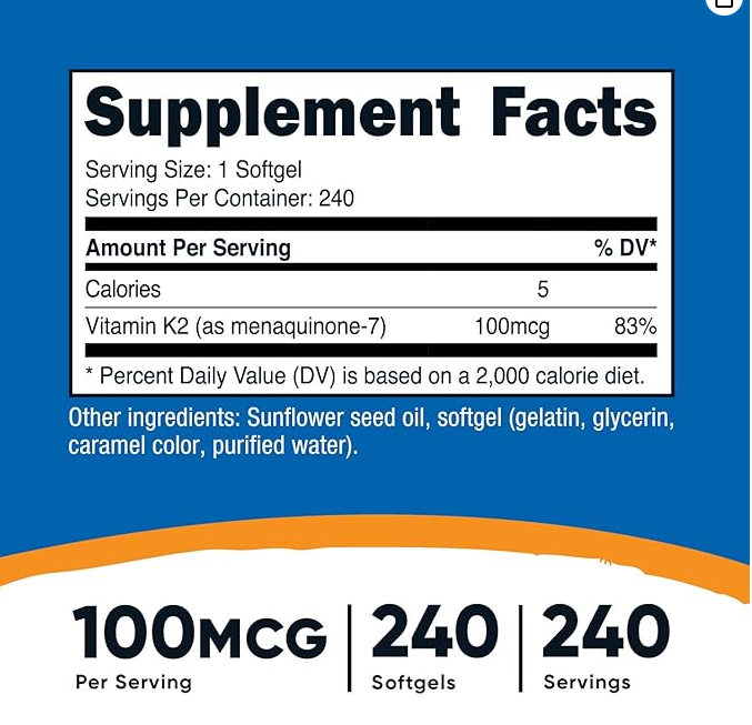 Nutricost Vitamin K2 100mcg 240 softgels, 维生素K2,240粒