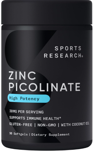Sports Research Zinc Picolinate 30mg 90 Softgels 吡啶甲酸锌30mg 90粒